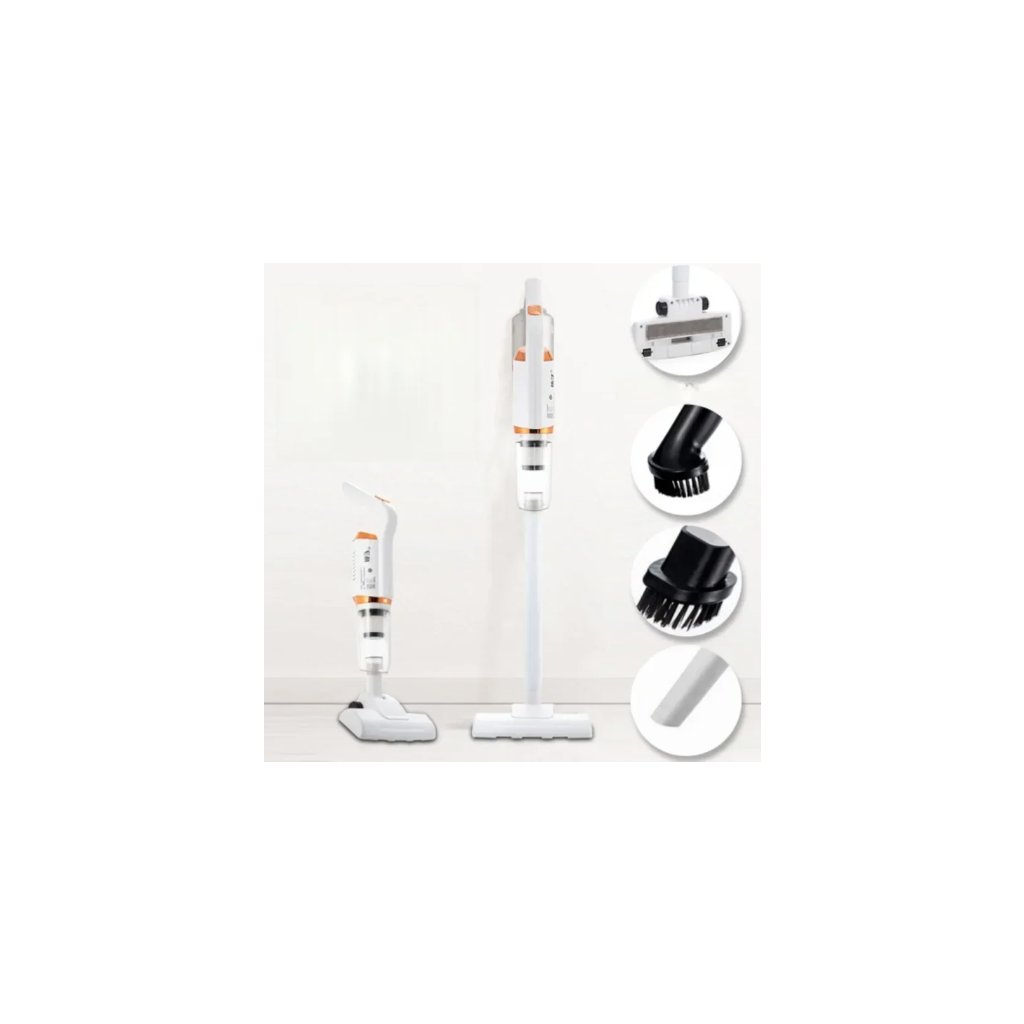 Vysavač s 5 různými nástavci pro komplexní čištění různých povrchů: prodloužený nástavec (čištění oken, aut, rohů), kartáč s dvojí funkcí (čištění a utírání prachu), podlahový kartáč (čištění koberců a pohovek), hubice (nafukování/vyfukování uzavřených úložných sáčků na oblečení, polštáře, matrace).